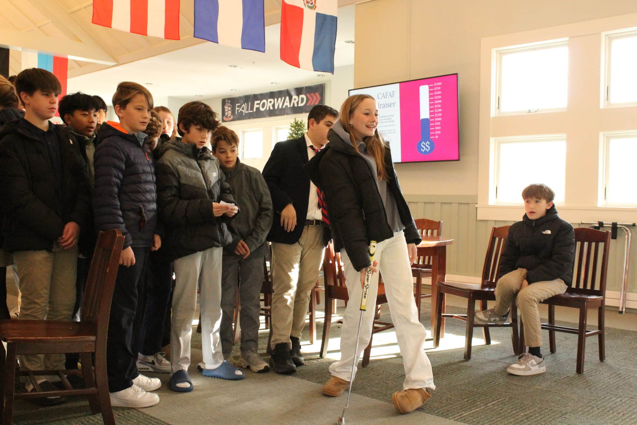 Students helped design “Putt for Playclothes,” a fundraiser that invited broad participation and quickly became a favorite. “I was surprised by how popular it was,” Oliver adds. “We ran it during recess each day, and it was tough to get everyone back to class on time.”